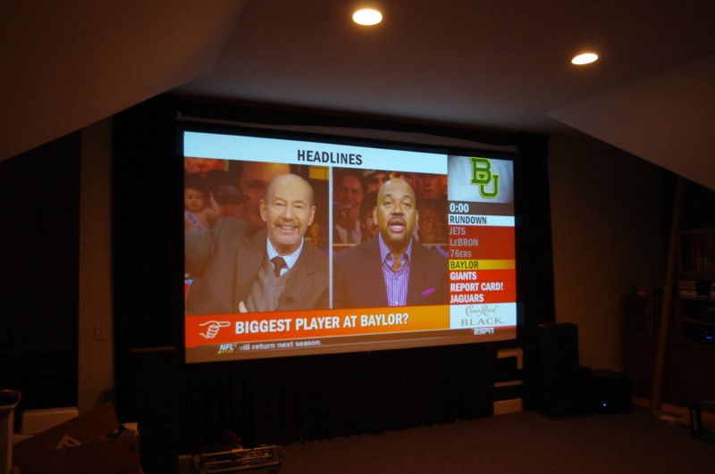 Black velour was then installed around the screen to give a theater appearance and help with room acoustics